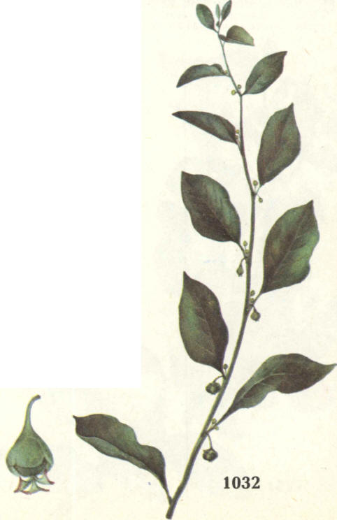 1031 свистуля — дворічна трав'яниста майже гола рослина родини селерових (зонтичних). Те саме, що й болиголов плямистий. 1032 СЕКУРИНЕГА КУЩИСТА секуринега полукустарниковая Securinega suffruticosa, синонім — S. ramiflora — розлогий, 1—2 м заввишки кущ родини молочайних. Молоді пагони ясно-жовті, голі. Листки чергові, короткочерешкові, еліптичні або овально-ланцетні. 1,5— 7 см завдовжки, на верхівці заокруглені. Квітки одностатеві (рослини дводомні) з простою чашечковидною оцвітиною, зе-ленувато-жовті або зелені, пазушні; чоловічі квітки на коротеньких ніжках по 2—15 у пучку, жіночі — здебільшого одиничні, на довших (до 10 мм) ніжках. Плід — тригнізда коробочка. Цвіте у червні. Поширення. Секуринега кущиста дико росте на Далекому Сході і в Східному Сибіру. На території України її вирощують у садах і парках як декоративну рослину. Заготівля і зберігання. Для медичних потреб використовують висушені молоді, слабоздерев'я-нілі верхівки пагонів секуринеги (Cormus Securinegae). Заготовляють пагони (з пуп'янками, квітками або плодами) з червня до вересня. Готову сировину пакують у тюки, обшиті тканиною, по 40—50 кг. Строк придатності — 4 роки. Хімічний склад. Пагони секуринеги містять алкалоїди, головним серед яких є секуринін. Фармакологічні властивості і використання. Алкалоїд секуринін за характером дії схожий на стрихнін: збуджує центральну нервову систему, підвищує рефлекторну збудливість спинного мозку. На відміну від стрихніну, секуринін має нижчу активність і, що важливо, меншу токсичність (у 8—10 раз). Застосування се-куриніну показане при астенічних станах, парезах і паралічах, що виникли внаслідок перенесених інфекційних та інших захворювань, при гіпо- й астенічній формі неврастенії, при статевому безсиллі на грунті функціональних нервових розла- |