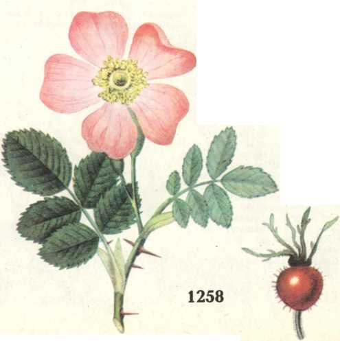 1258 ШИПШИНА ЯБЛУНЕВА шиповник яблоневый (Rosa villosa, синонім — R. роті f era) — щільний, прямостоячий, до 1,5 (2) м заввишки кущ родини розових. Стебла, як і квітконосні пагони, вкриті однотипними прямими, нерідко дещо відхиленими вгору, рідше донизу шипами. Квітконосні пагони, крім того, інколи вкриті дрібними голчастими або щетинистими залозками. Листки спіральні, непарноперисті, великі (8,5—9 см завдовжки), з головним стриженьком, усіяним, як і прилистки, волосками з домішкою залозок; листочки (їх 7, рідше 5 або 9) широкоеліптич-ні, великі, 4—5 см завдовжки і 2,5—3 см завширшки, з обох боків, особливо зісподу, рясно всіяні волосками з домішкою залозок. Квітки правильні, двостатеві, в малоквіткових щитковидних суцвіттях, рідше одиничні, на коротких (до 10—15 мм) залозисто-щетинистих квітконіжках; чашолистки на спинці залозисто-щетинисті, зовнішні — з перистими, рідше нитковид-ними додатками, після цвітіння піднімаються вгору, змикаються і залишаються при стиглих плодах; пелюстки (їх 5) темно-рожеві, коротші за чашолистки. Плід — гіпантій, пурпуровий, кулястий або майже кулястий, великий, залозисто-щетинистий. Цвіте у червні — липні. Поширення. Шипшина яблунева росте майже по всій території України в чагарникових заростях, на узліссях, у рідколіссі, а також на урвищах та вздовж лісових струмків. Заготівля і зберігання — див. у статті Шипшина травнева. Хімічний склад. Шипшина яблунева має близький до шипшини травневої хімічний склад, але відрізняється трохи іншим вмістом і співвідношенням компонентів, що його складають. Фармакологічні властивості і використання, лікарські форми і застосування — усе так, як у статті Шипшина травнева. |