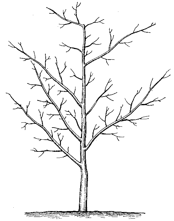 У промислових садах старих конструкцій найбільшого поширення набула розріджено-ярусна крона. Складається вона з 5—7 гілок першого порядку, що розміщуються в двох ярусах. У нижньому ярусі закладають 2— З гілки, у верхньому — лише дві. Вище першого ярусу можна закладати і поодинокі гілки. На скелетних гілках нижнього ярусу формують гілки другого порядку, на гілках верхнього ярусу — лише плодові обростаючі гілочки, щоб не було затінення гілок нижнього ярусу. Вище другого ярусу закладається (на відстані ЗО см) поодинока гілка, над якою центральний провідник вирізують або підв’язують шпагатом вниз (рис. 17).